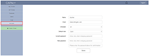 Now that you are logged in, click on “Account” in the left menu. General details will be displayed on this screen. Insert your temporary password into “Current password” and enter in your “New password” and click “Save”. Once your password is successfully changed, a message in green stating “Changes have been successfully reflected” will show up on the top of the screen. Note that you can also change other settings including preferred languages (English or Japanese) and default ticket view (Card or List) on this screen.