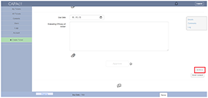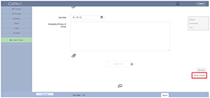 Once details of a ticket have been completed (all details up until Evaluating Efficacy of Action), the ticket is ready for approval. In order to approve a ticket (can approve any ticket if you are a Master User; can approve any ticket you did not create if you are a General User), click on the Approve button at the bottom of the Ticket Detail screen.