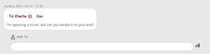 To direct a message to a different user in the organization, click the “Add To” button, and a list of all users within the organization will show up. Select the users you want to message. You can select multiple users by holding down the Ctrl button and selecting the relevant users. Write a message in the text field below the user selection, and then click the “Send” icon (indicated in orange on Figure A).