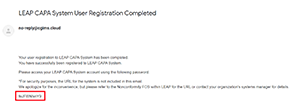 - When you are registered as a user on CAPAct, an automatic email will be sent with a temporary password. (See screen below)