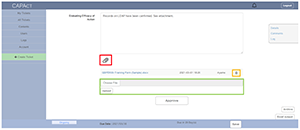 Each stage has an attachment function, and relevant evidence should be uploaded as necessary. To see what files are already attached or to attach a new document, simply click on the paperclip mark underneath the relevant stage (indicated in red).