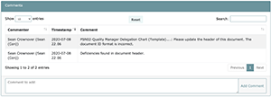 Comments noted on the deficiency feedback form will be show up at the bottom of the task screen in the Comments section. If no other comment besides the general comment was made to documents, an automatic comment by the user who carried out the Self-Audit stating “Although no evidence was marked out of compliance, please check it again” will be included in the Comments section. (See the following screenshot)