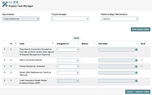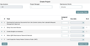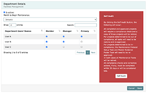 Note that you can change the team members assigned to each task and the Self-Audit due date using the Project Task Manager screen.