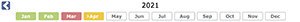 In this example, the carousel selector shows a monthly maintenance task which has 3 previous iterations and 1 current iteration. The first two, Jan & Feb are denoted in green. This color mirrors the behavior of LEAP’s project folders which means these tasks were completed and approved. March however shown in red is late and needs to be addressed immediately. The current iteration, shown in yellow, is due soon. To address the late task pictured above the user would simply click on that iteration, check evidence and/or upload evidence, and request approval. Once that maintenance iteration has been approved, it will turn green.