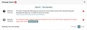 When you first log into LEAP you’ll notice a message board at the top of your QMS Dashboard. This is a personalized message board and it will contain all LEAP automated messages directed to you. As projects are created, you will see messages here pertaining to task assignments, document reviews, and approval requests depending on your role within your laboratory. Additionally, system wide messages will appear here as well.
