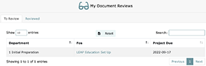 Document reviews are listed by their parent projects scheduled due dates. This gives you an idea of how much time you have to complete each review.