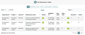 The My Maintenance Tasks page displays maintenance tasks assigned to you that you must complete in order to maintain your organization’s QMS.