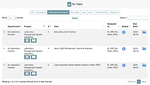The My Tasks page displays project tasks assigned to you that you must complete in order to implement your organization’s QMS.