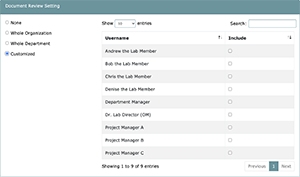 Regardless of your laboratory’s size we encourage you to involve as many people as possible in building and maintaining your QMS. The more people you have involved, the more value you will receive. At the very least, even if you do not assign them to be a manager of a project or task, you should consider adding all members of your laboratory for educational purposes (i.e., by utilizing the content library and the document review feature).