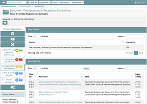 Task 5 can only be performed by the Project Manager and approved by the Organization Manager or Department Managers who have been delegated this function by the Laboratory Director. It’s also important to remember that task 5 can only be worked on once tasks 1-4 are complete. This is because task 5 serves as the container for all evidence, including uploads and comments in other tasks. Project Managers will choose which comments and files should be included into the final master evidence folder (MEF). Once these comments and files have been chosen for inclusion into the MEF, the Project Manager should then request approval. In some cases, the Project Manager will have to include an additional custom file to fulfill the evidence of compliance. This usually is applicable if you have a log template that is used for maintenance, and you need to save the first iteration of the completed document in the MEF.