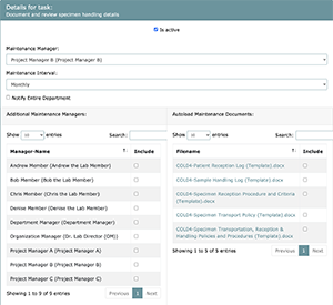 It is possible to perform annual document reviews for documents such as Assay SOPs or Policies and Procedures in each FOS by using the Maintenance system. The self-audit process, however, may be a more effective way of using LEAP for annual reviews. You will need to make this determination when you set up your Task 4 maintenance for each FOS project. If you decide that annual reviews are to be handled through a Self- Audit, you should be N/A’ing any maintenance task that require an annual review of documentation.